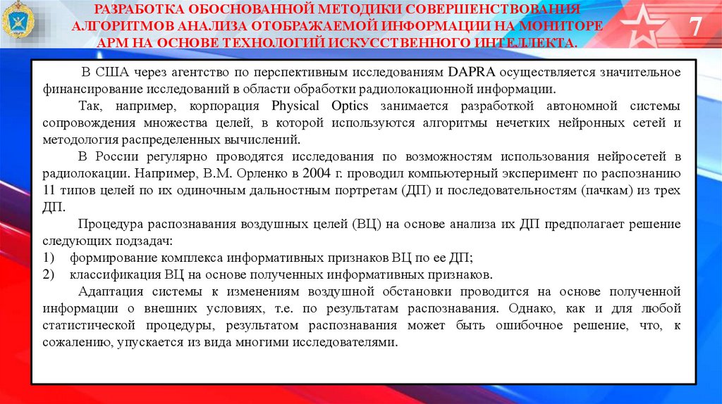финансирование исследований в области обработки радиолокационной информации.