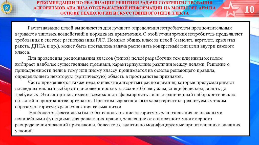 РЕКОМЕНДАЦИИ ПО РЕАЛИЗАЦИИ РЕШЕНИЯ ЗАДАЧИ СОВЕРШЕНСТВОВАНИЯАЛГОРИТМОВ АНАЛИЗА ОТОБРАЖАЕМОЙ ИНФОРМАЦИИ НА МОНИТОРЕ АРМ НА