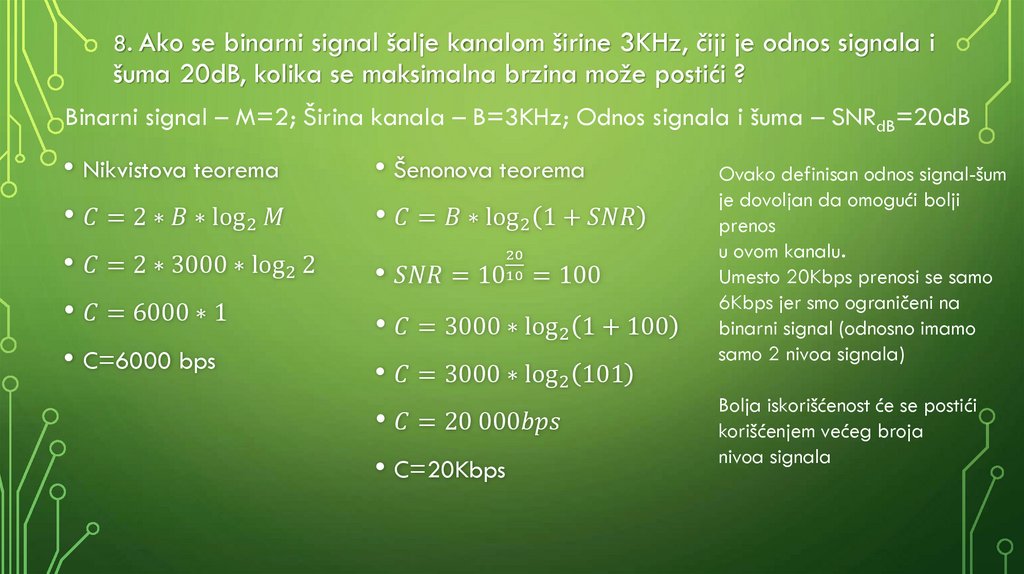 1. Izračunatineophodnu propusnost potrebnu za prenos u