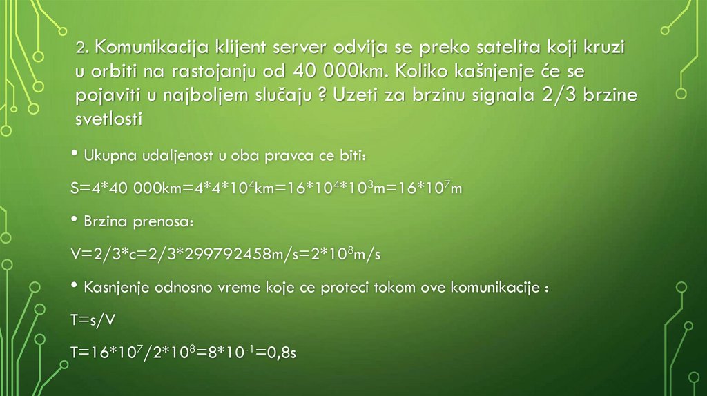 • Kasnjenje odnosno vreme koje ce proteci tokom ove komunikacije :