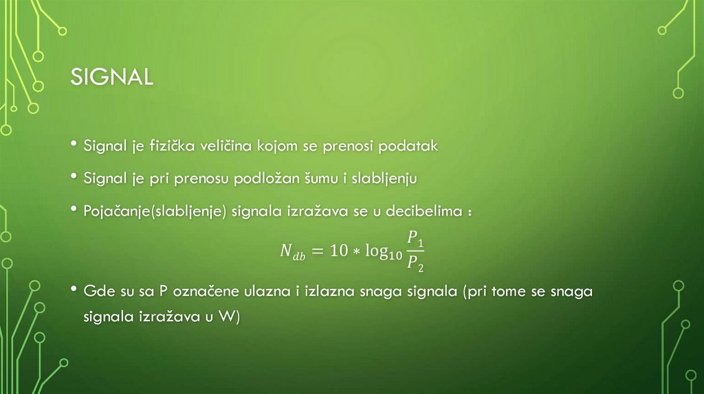 SIGNAL• Signal je fizička veličina kojom se prenosi podatak