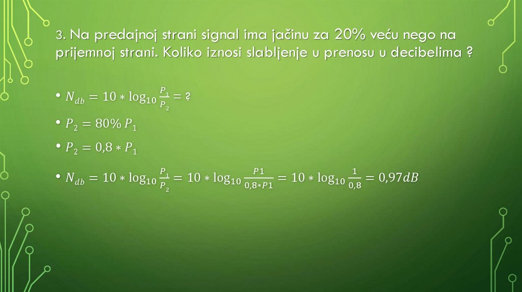 • Pojačanje(slabljenje) signala izražava se u decibelima :