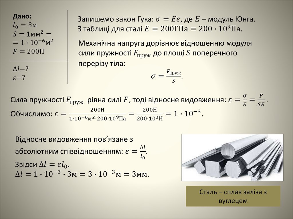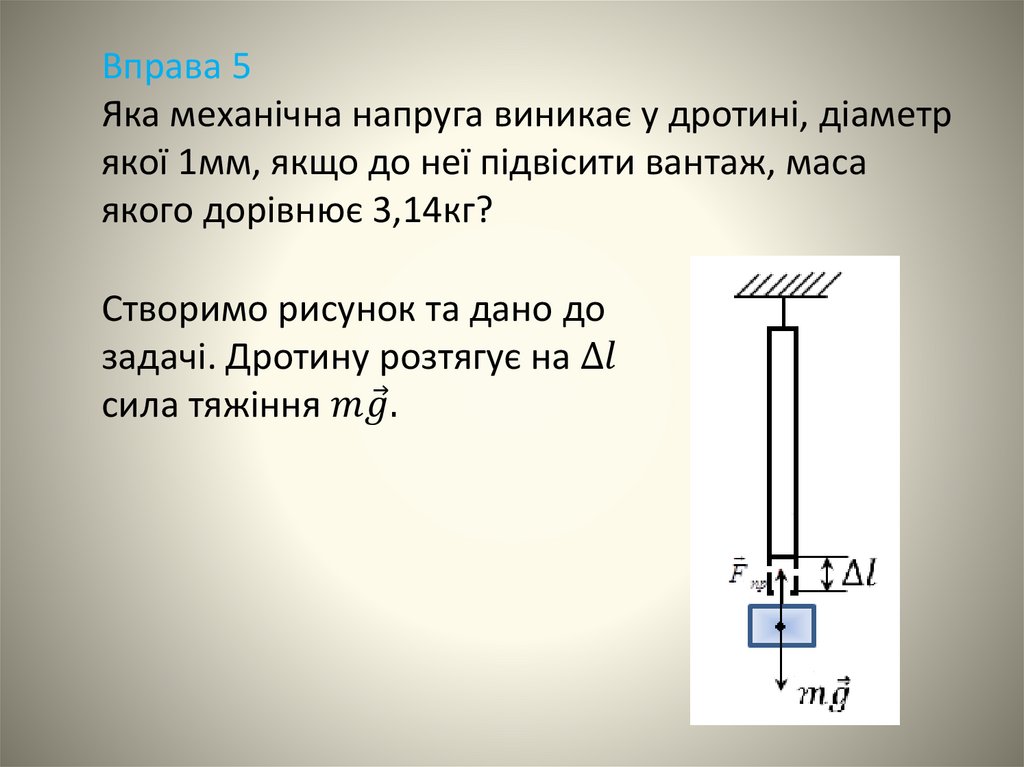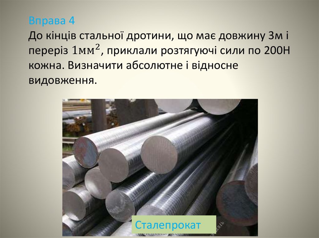 Вправа 4До кінців стальної дротини, що має довжину 3м і