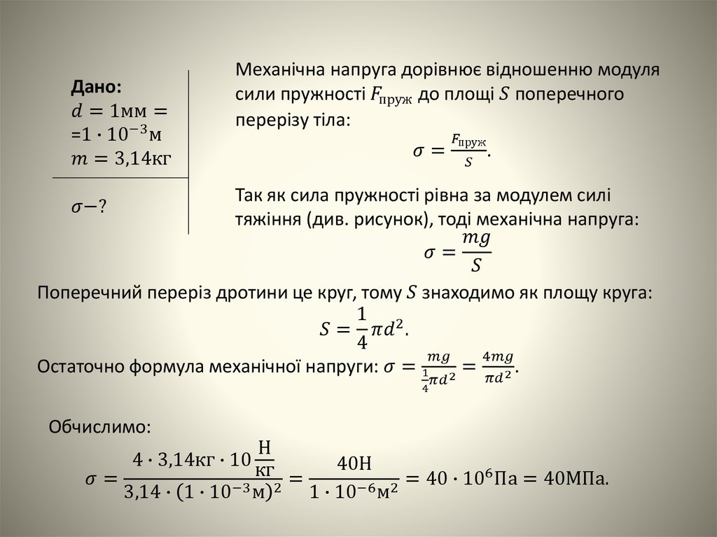 переріз 1мм2 , приклали розтягуючі сили по 200Н