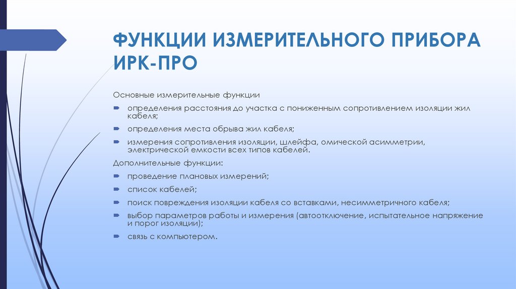 ФУНКЦИИ ИЗМЕРИТЕЛЬНОГО ПРИБОРАИРК-ПРО