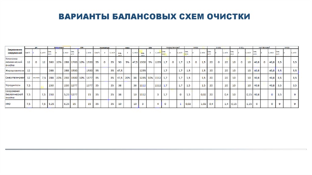 ВАРИАНТЫ БАЛАНСОВЫХ СХЕМ ОЧИСТКИ11.