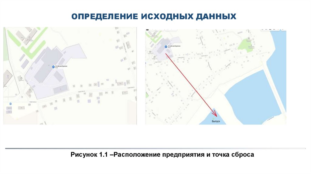 ОПРЕДЕЛЕНИЕ ИСХОДНЫХ ДАННЫХРисунок 1.1 –Расположение предприятия и точка сброса