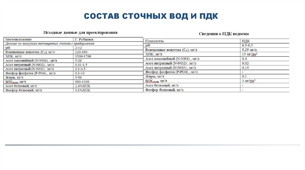 СОСТАВ СТОЧНЫХ ВОД И ПДК6.