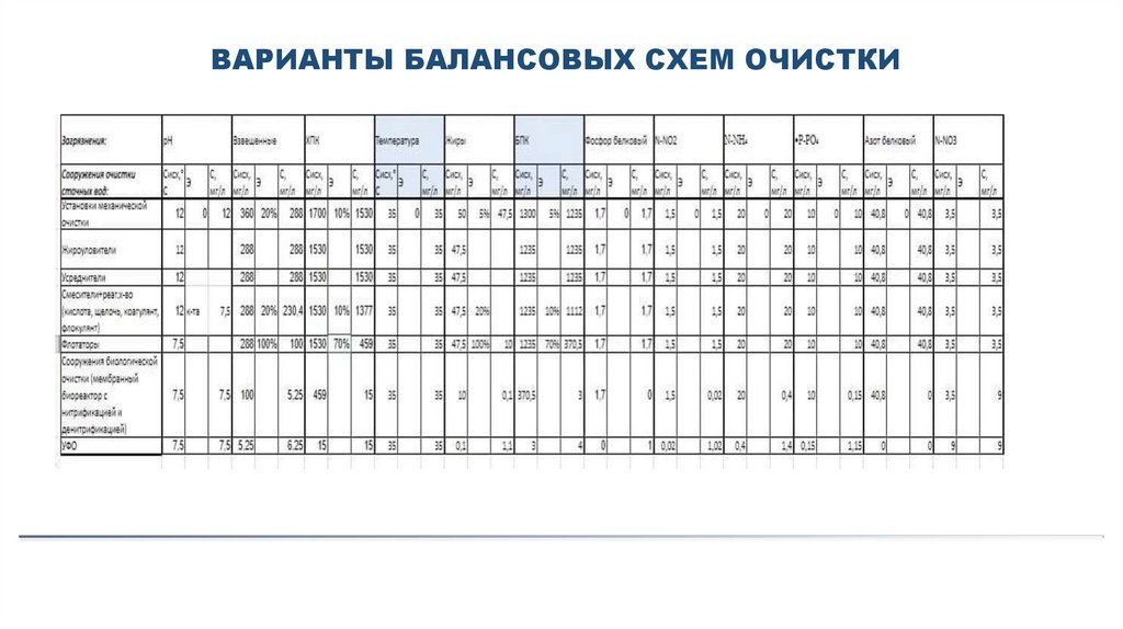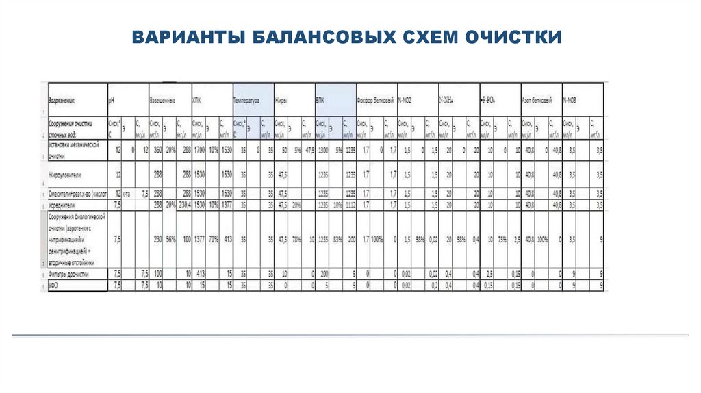 ВАРИАНТЫ БАЛАНСОВЫХ СХЕМ ОЧИСТКИ12.