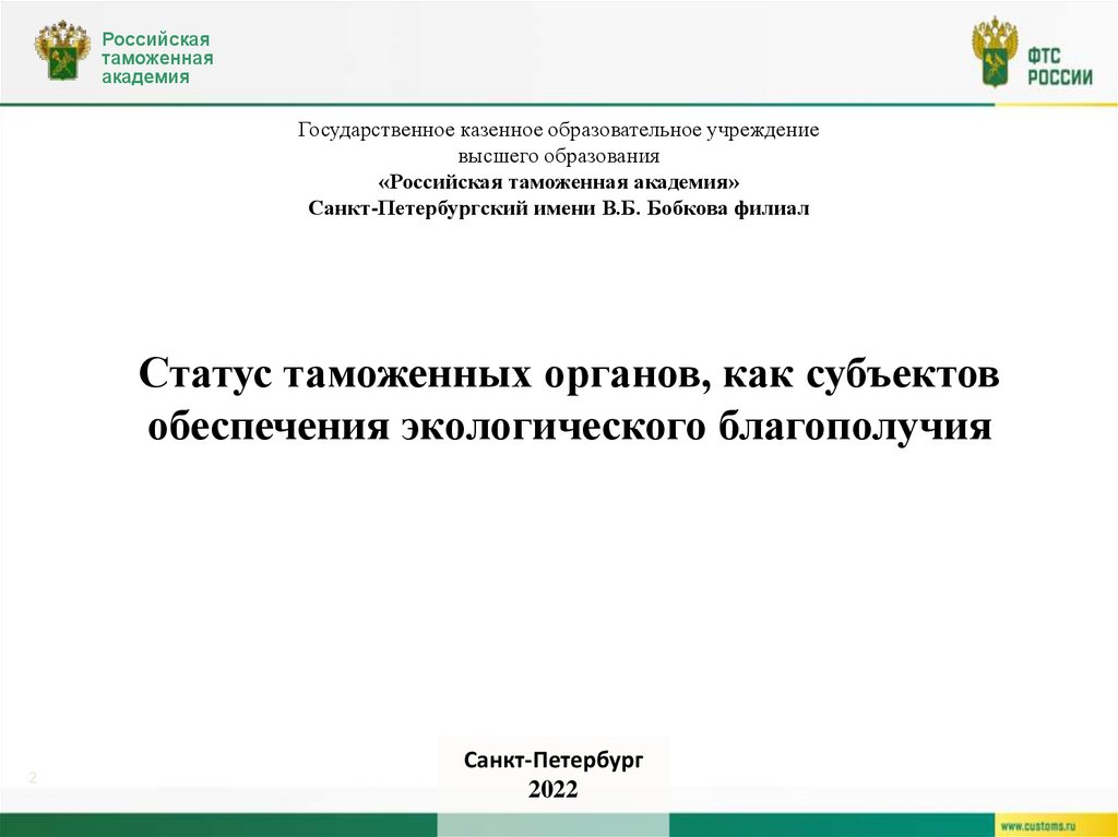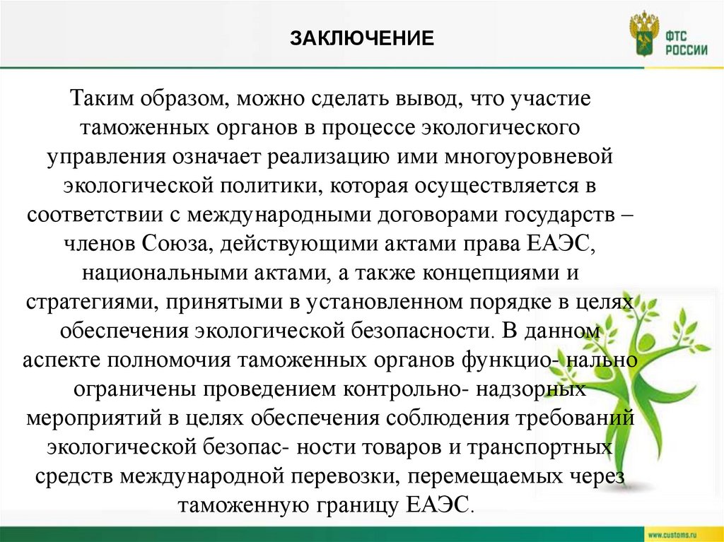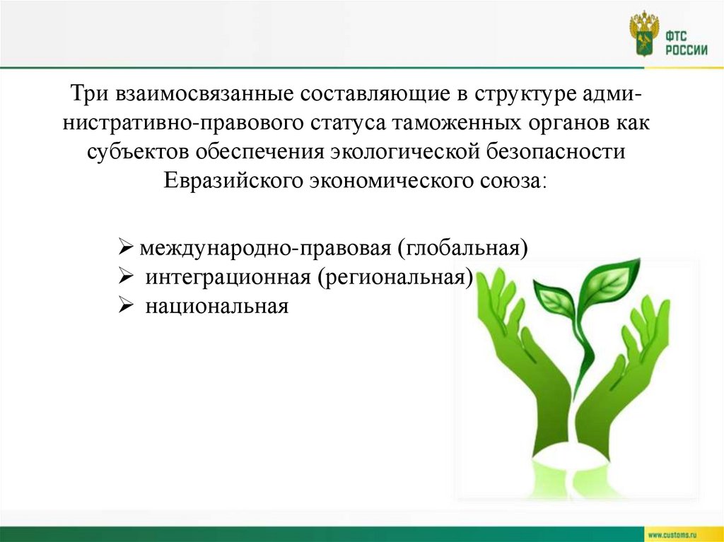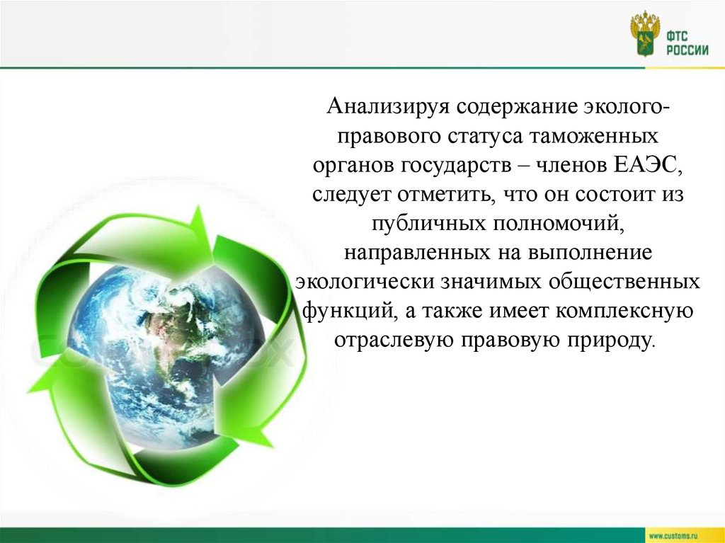 Анализируя содержание экологоправового статуса таможенныхорганов государств – членов ЕАЭС,