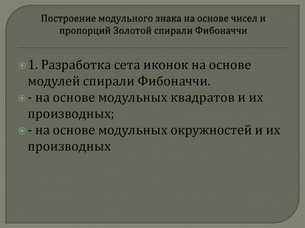 Построение модульного знака на основе чисел и пропорций Золотой спирали Фибоначчи. Часть 1