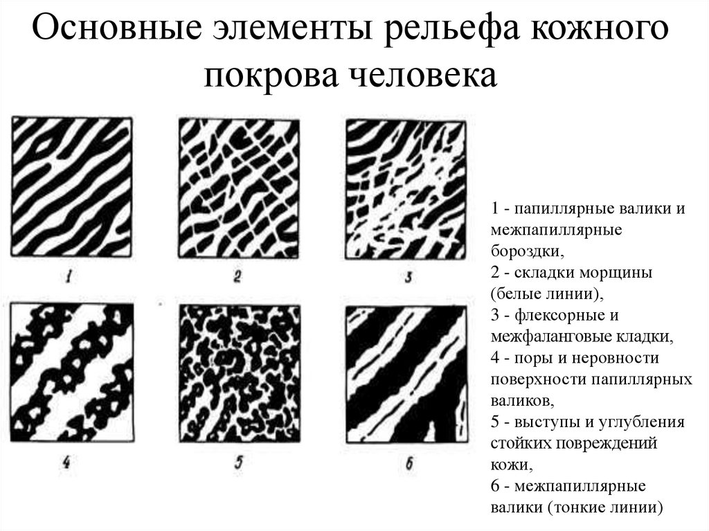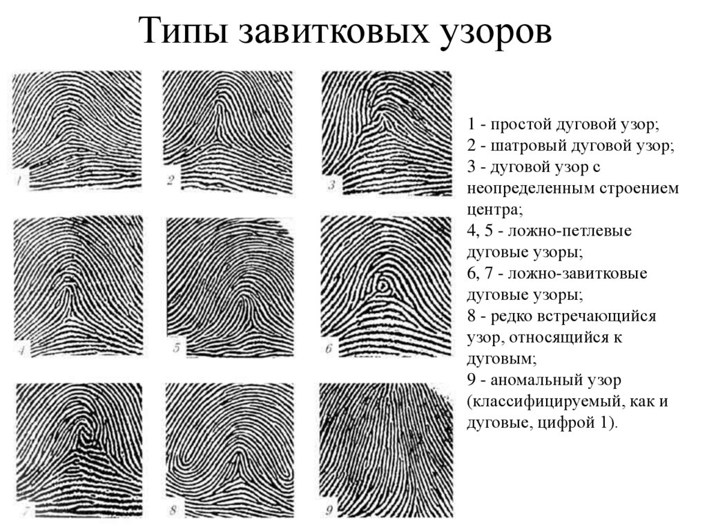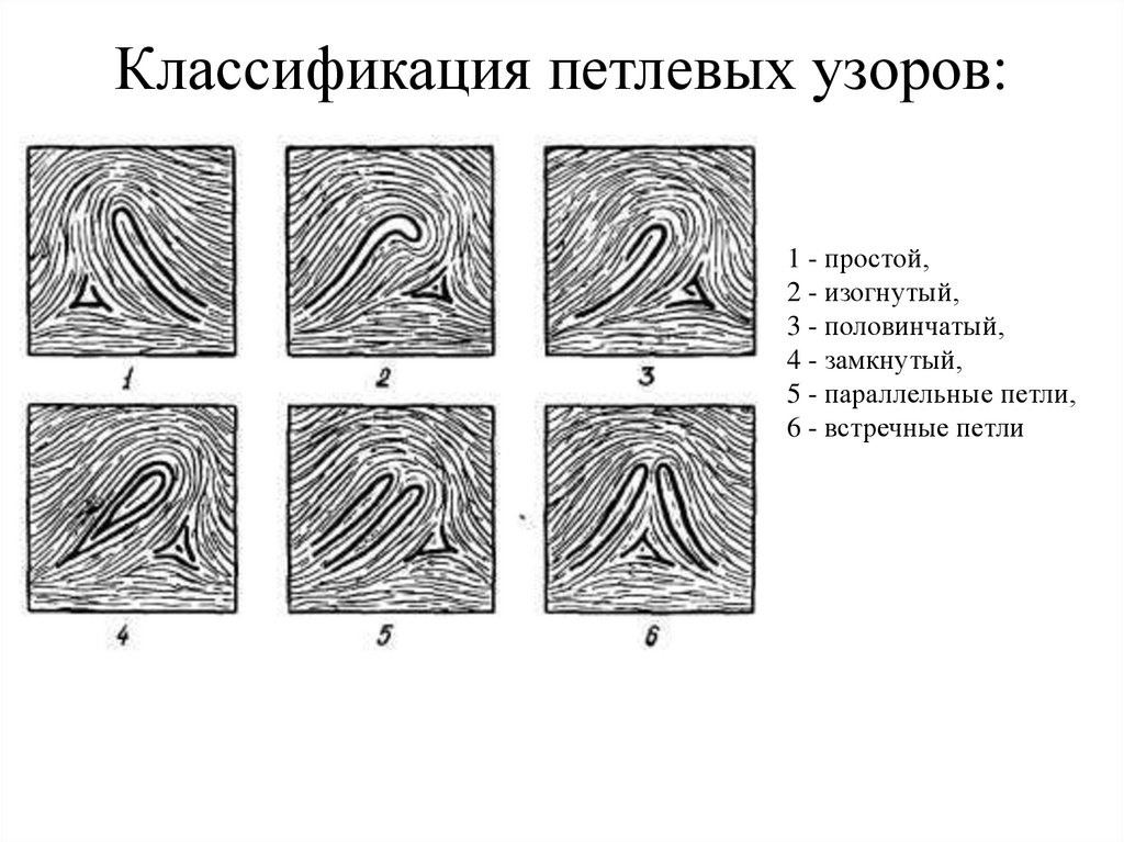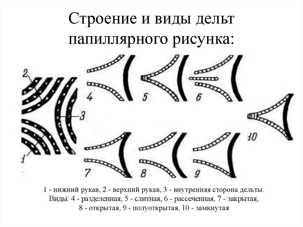 папиллярных линий, 8 – короткая папиллярная линия, 9 - точка, 10 - встречное