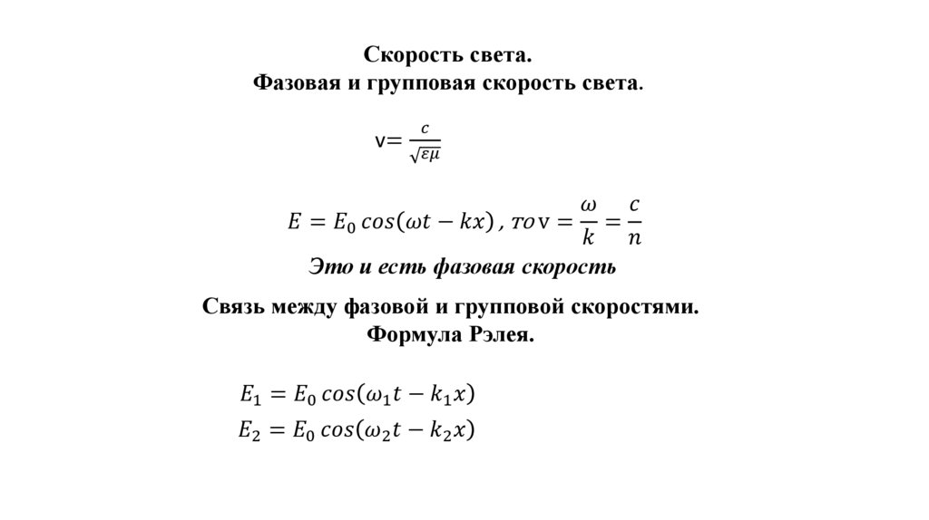Скорость света.Фазовая и групповая скорость света.