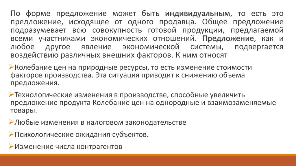 По форме предложение может быть индивидуальным, то есть этопредложение, исходящее от одного продавца. Общее предложение