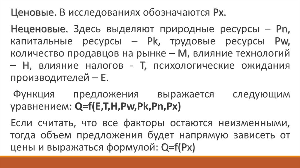 Ценовые. В исследованиях обозначаются Px.Неценовые. Здесь выделяют природные ресурсы – Pn,