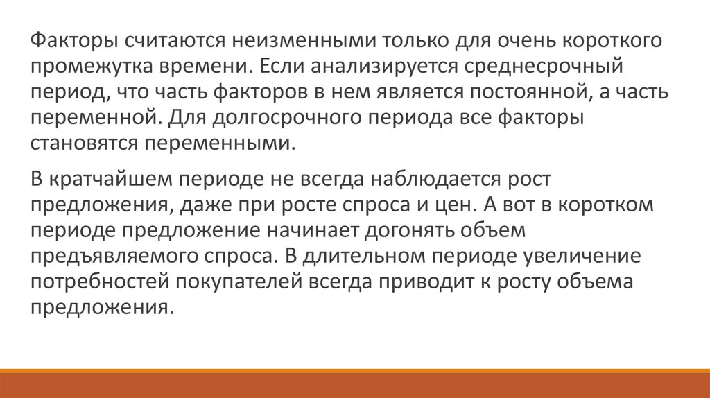 Факторы считаются неизменными только для очень короткогопромежутка времени. Если анализируется среднесрочный