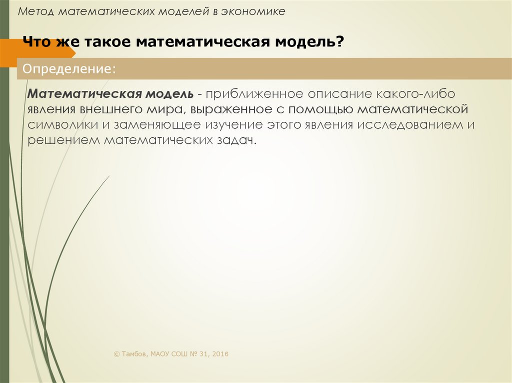 Метод математических моделей в экономикеЧто же такое математическая модель?