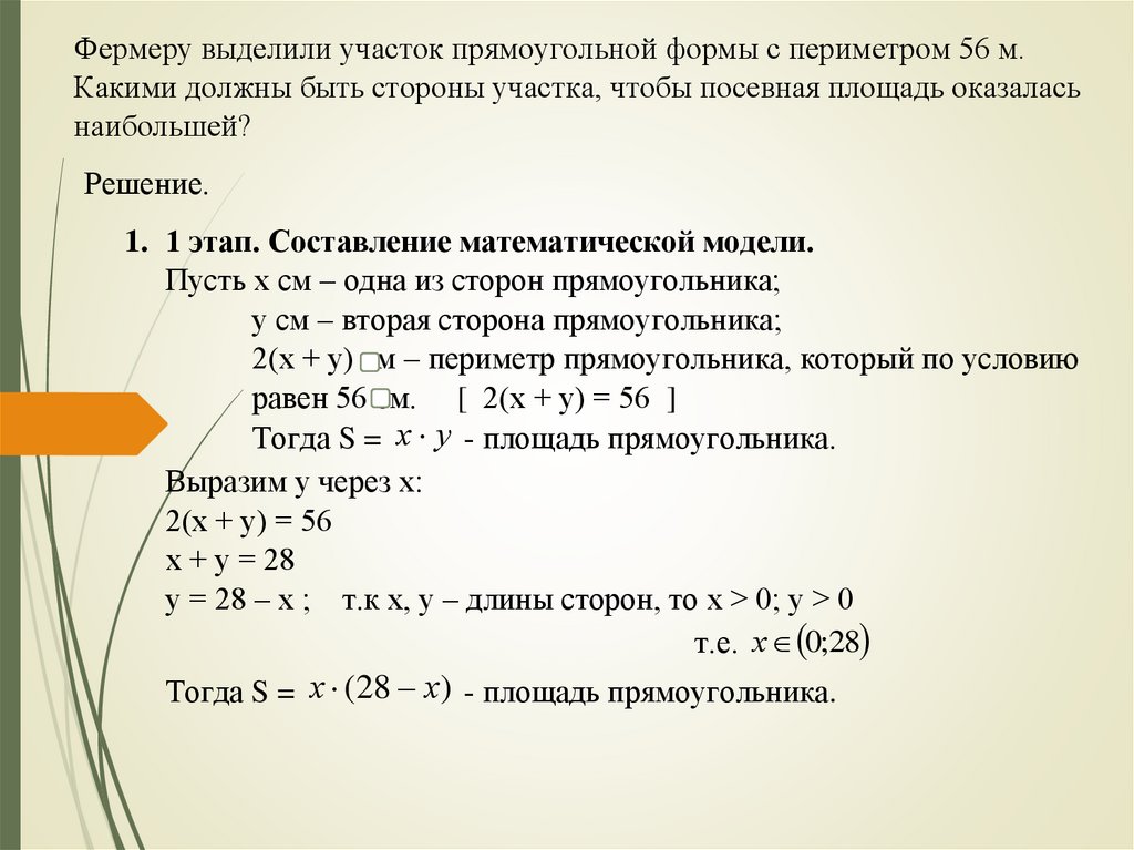 Тогда S = х ( 28 х) - площадь прямоугольника.