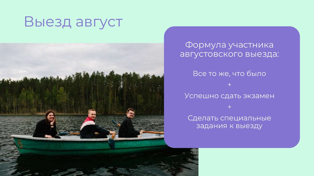 Выезд августФормула участника
