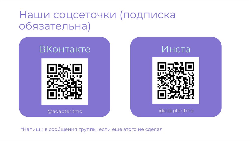 Наши соцсеточки (подпискаобязательна)