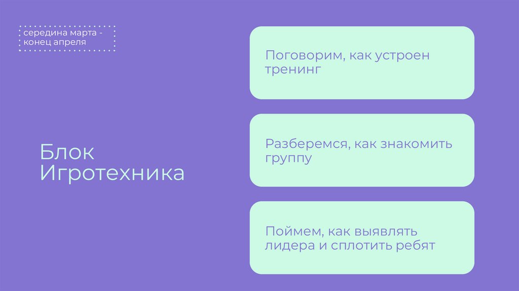 середина марта конец апреляБлок Игротехника