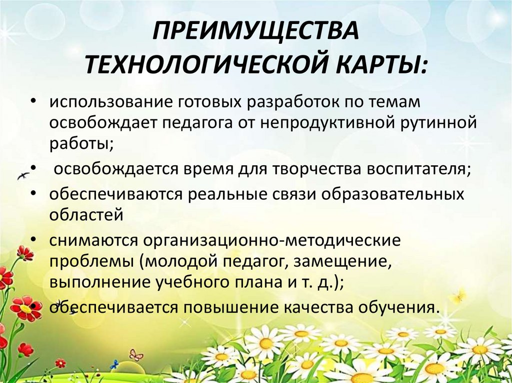ПРЕИМУЩЕСТВАТЕХНОЛОГИЧЕСКОЙ КАРТЫ: