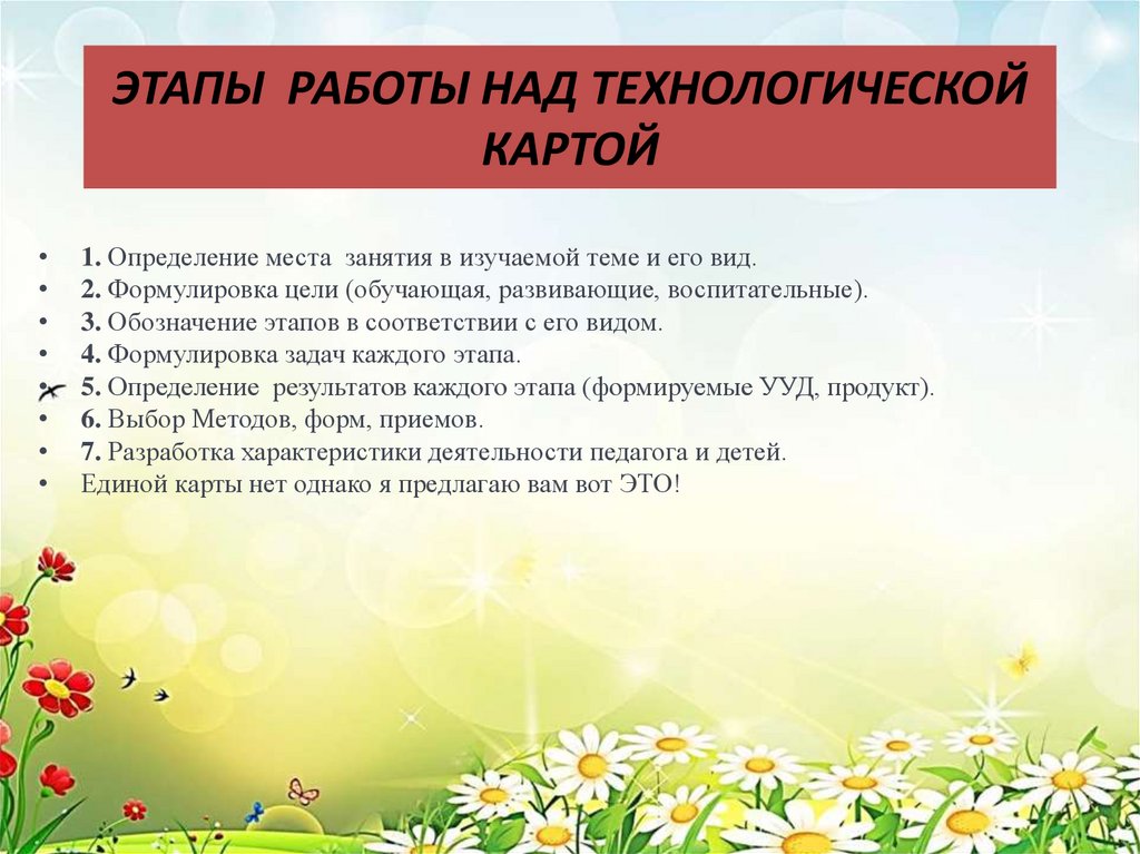Этапы работы над технологической картой:
