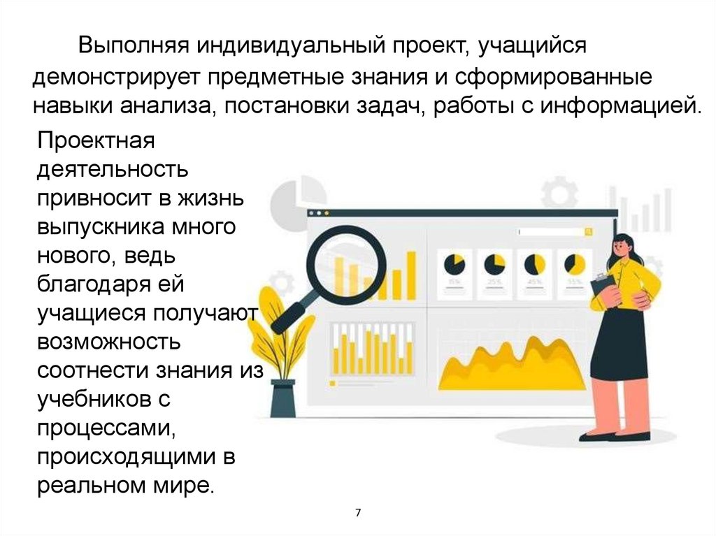 Выполняя индивидуальный проект, учащийсядемонстрирует предметные знания и сформированные