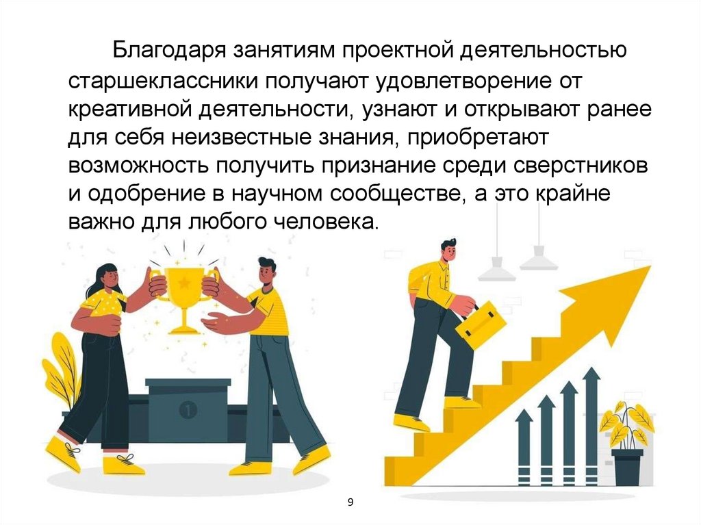 Благодаря занятиям проектной деятельностьюстаршеклассники получают удовлетворение от