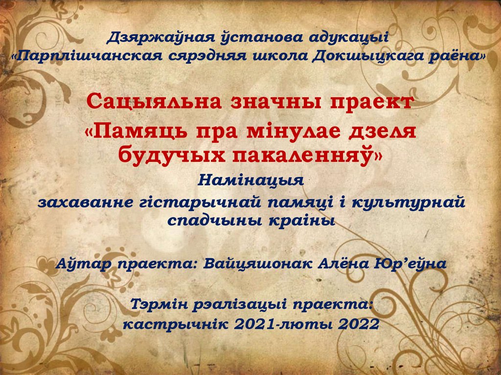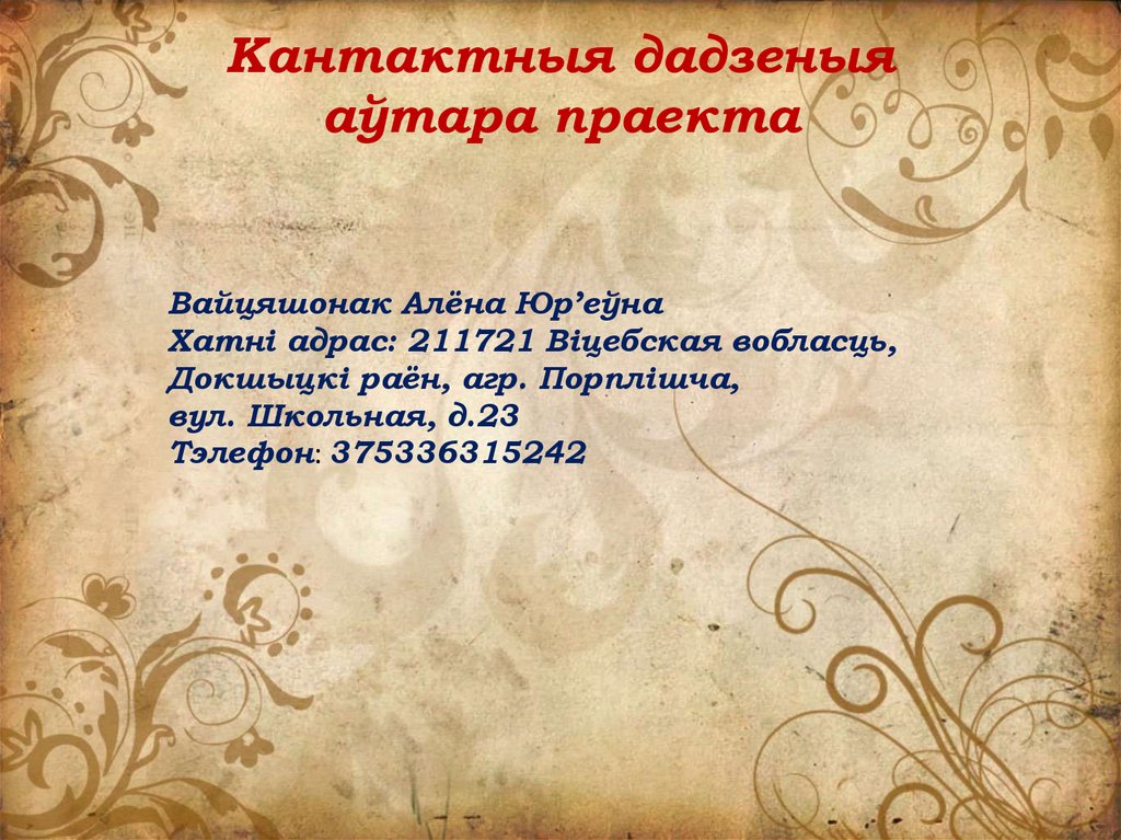 Аўтар праекта: Вайцяшонак Алёна Юр’еўна
