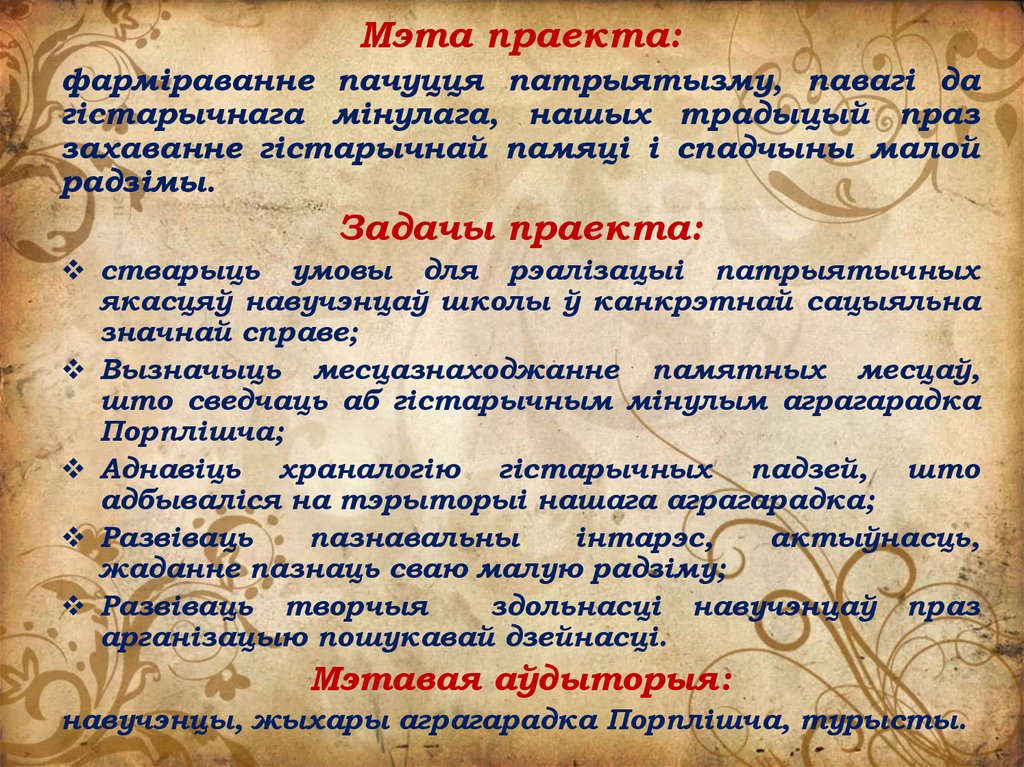 Мэта праекта:фарміраванне пачуцця патрыятызму, павагі да