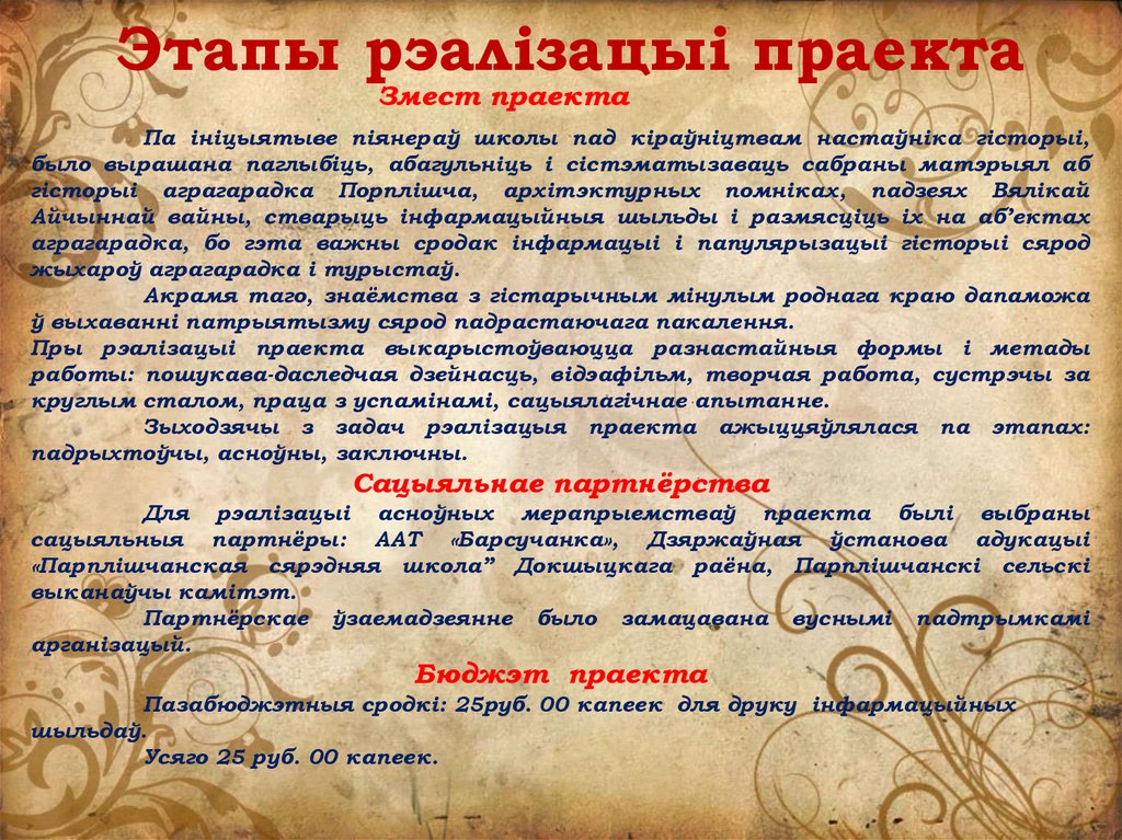 Этапы рэалізацыі праектаЗмест праекта