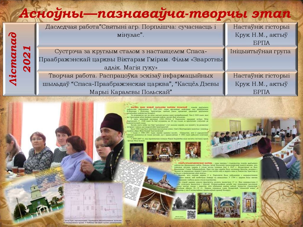 работы: пошукава-даследчая дзейнасць, відэафільм, творчая работа, сустрэчы за