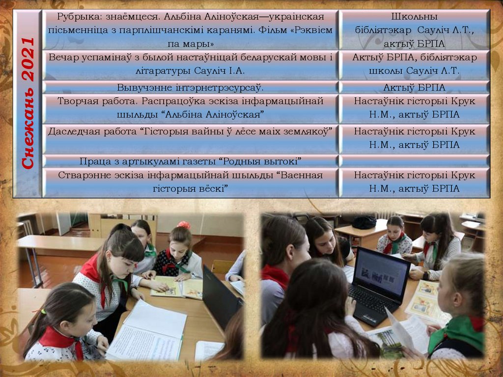 бібліятэкар Сауліч Л.Т.,