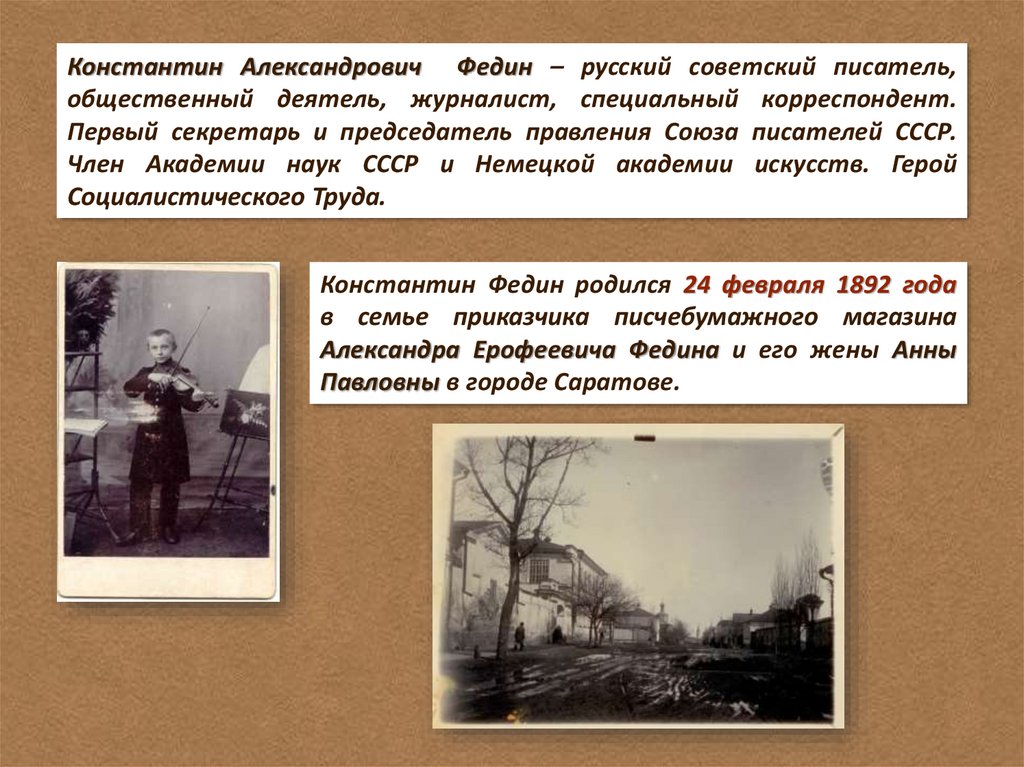 Константин Александрович Федин – русский советский писатель,общественный деятель, журналист, специальный корреспондент.