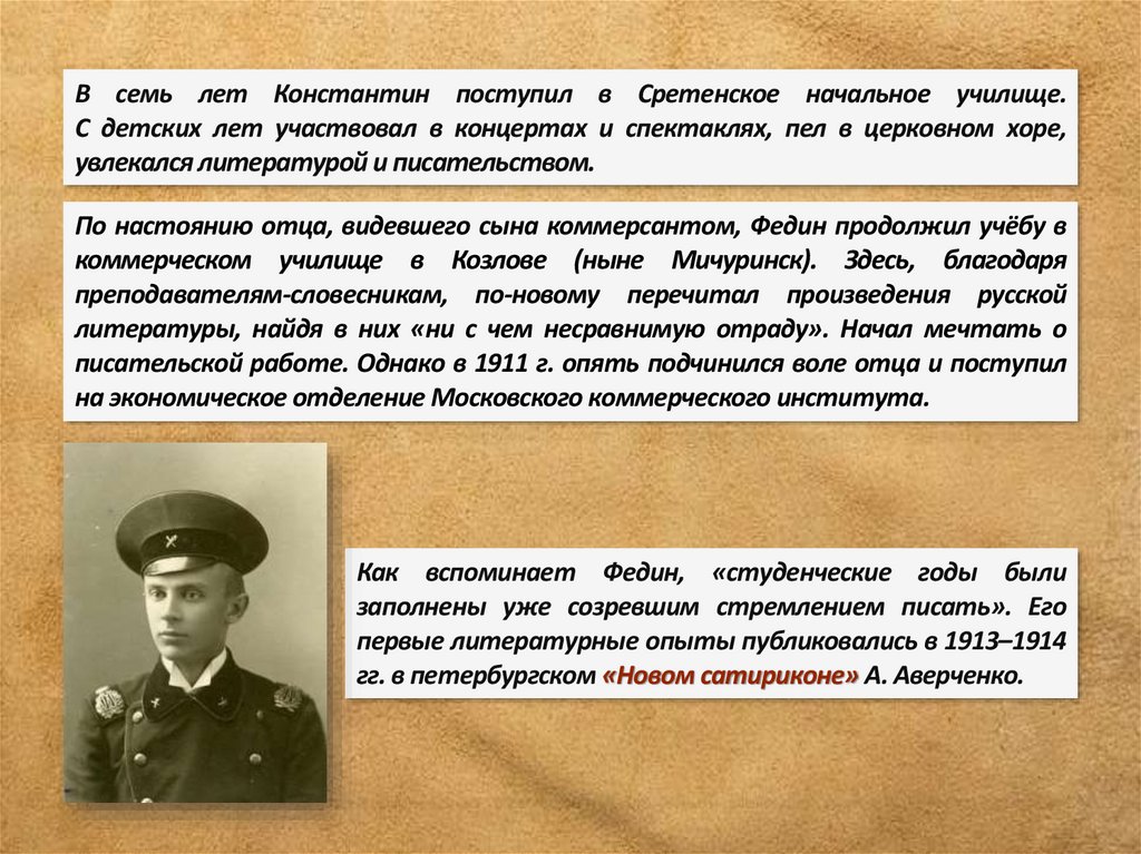 литературного творчества Константина Федина. В дальнейшем он занимался