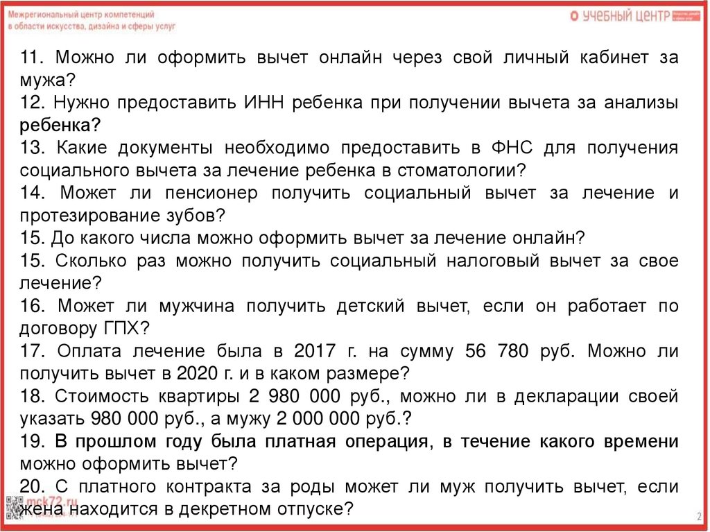 11. Можно ли оформить вычет онлайн через свой личный кабинет замужа?