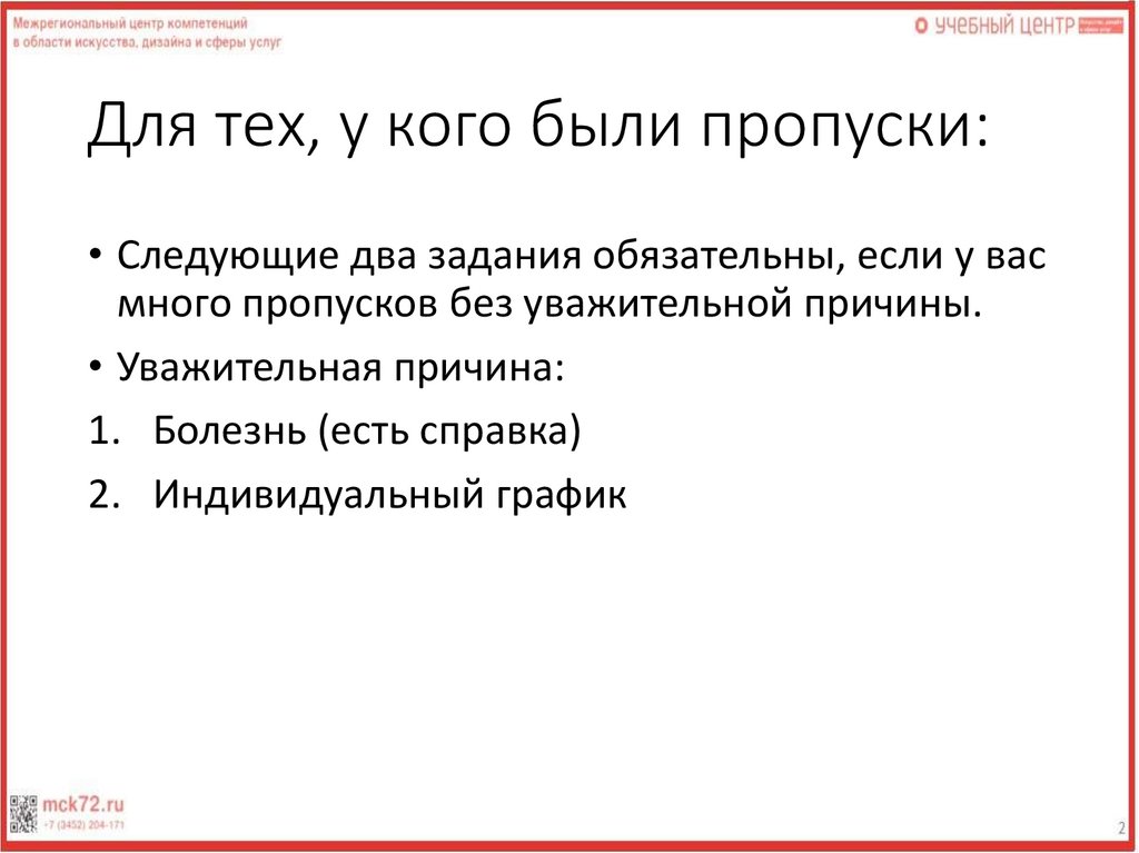 • Уважительная причина: