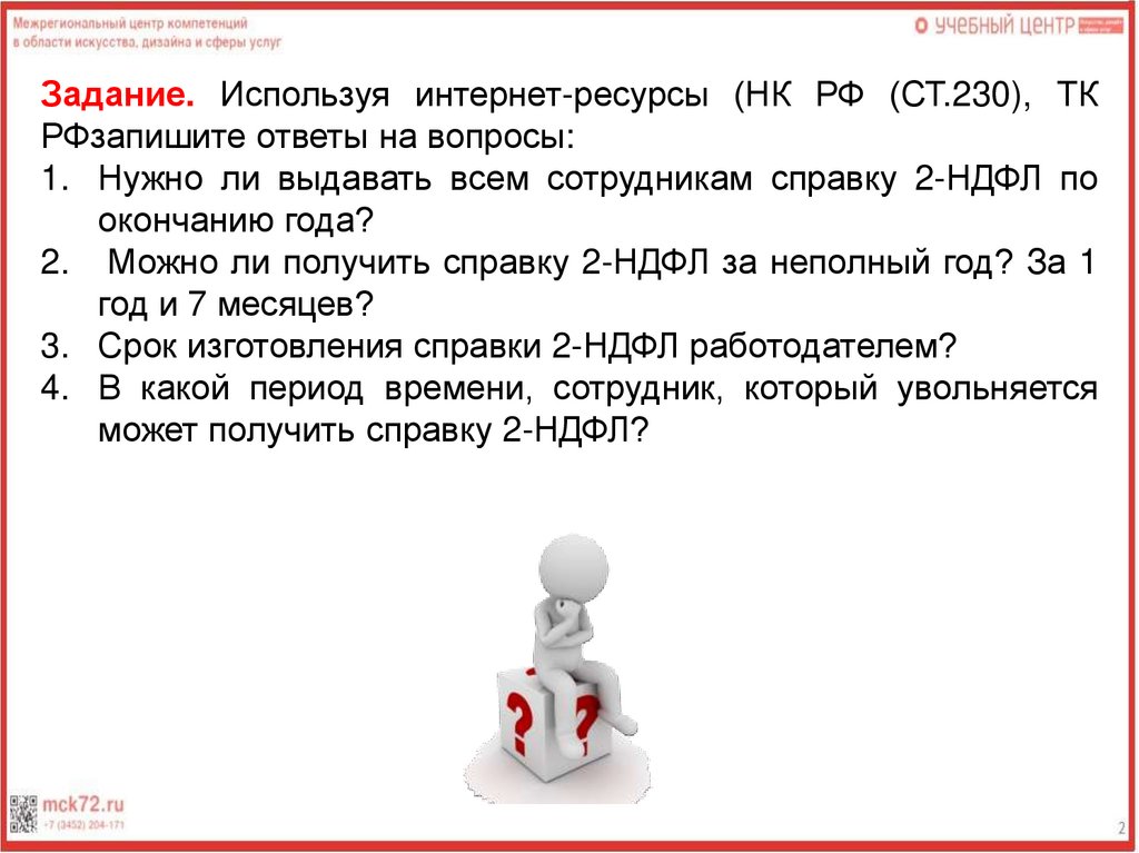 2. Можно ли получить справку 2-НДФЛ за неполный год? За 1