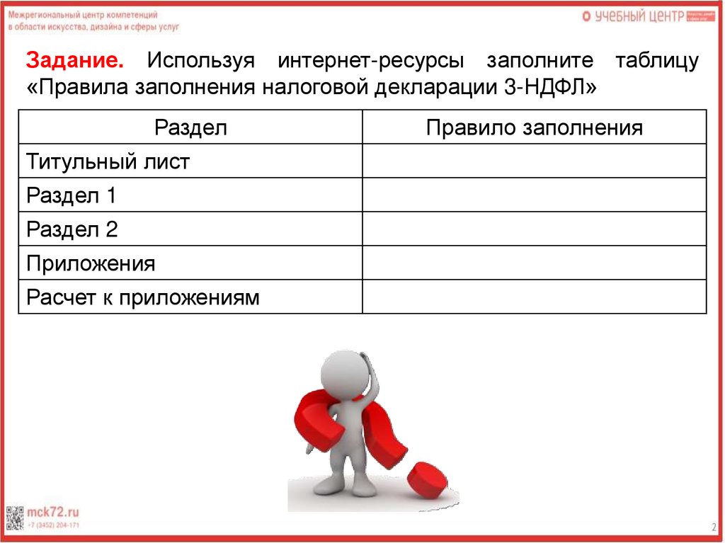 Задание. Используя интернет-ресурсы заполните таблицу«Правила заполнения налоговой декларации 3-НДФЛ»