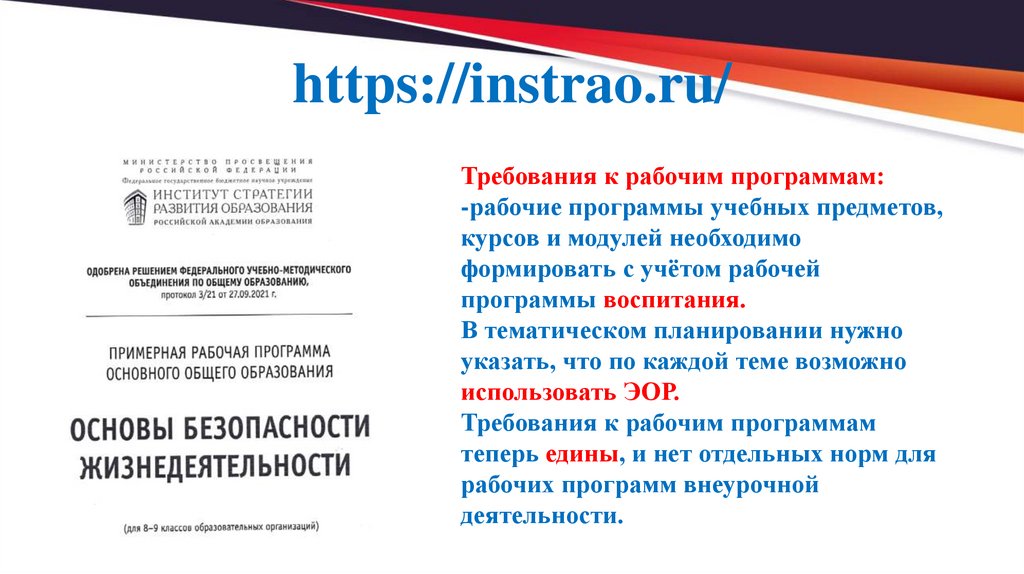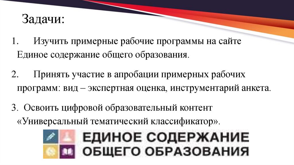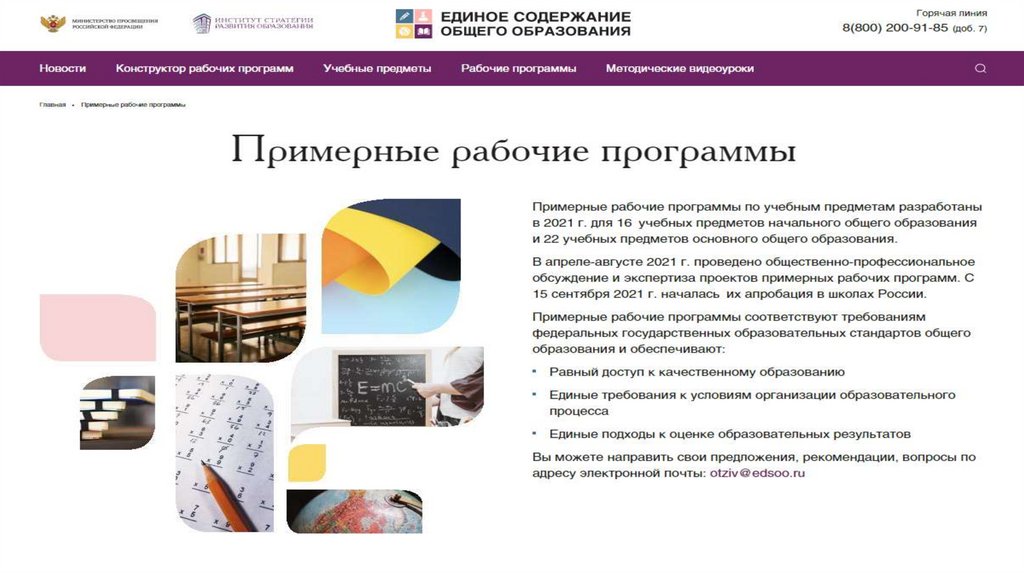 Задачи:1. Изучить примерные рабочие программы на сайте
