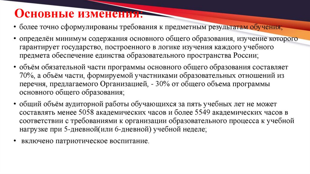 Основные изменения:• более точно сформулированы требования к предметным результатам обучения;