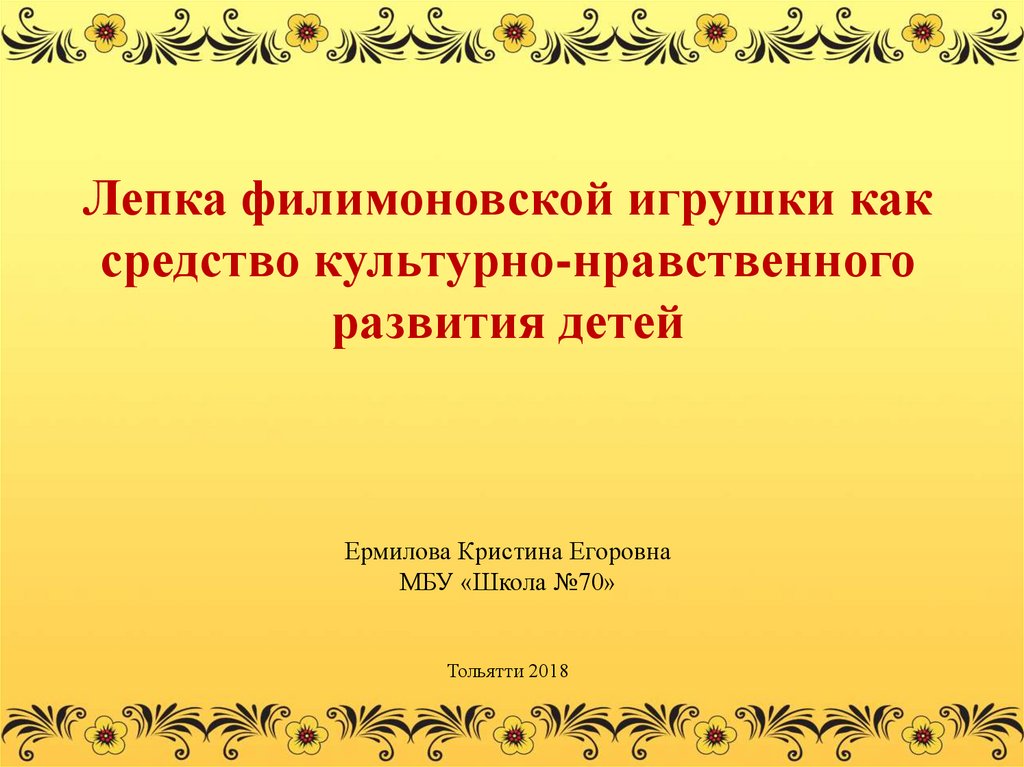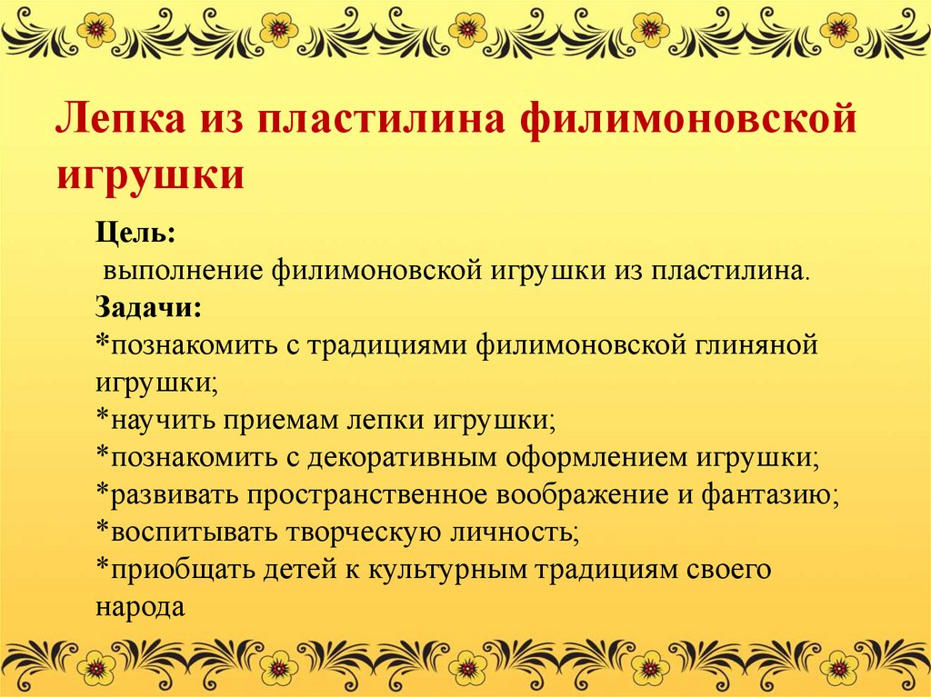 Лепка филимоновской игрушки каксредство культурно-нравственного