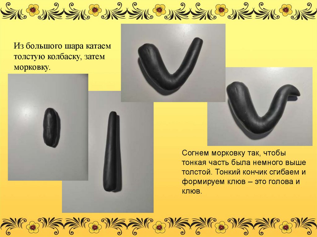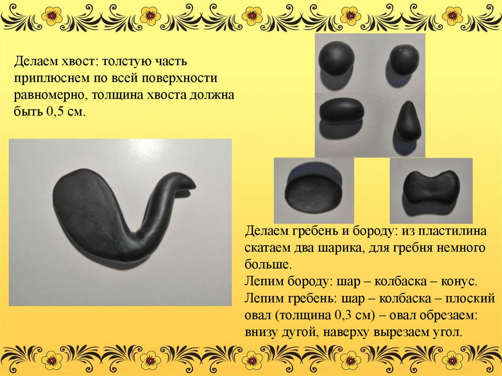 Делаем хвост: толстую частьприплюснем по всей поверхности