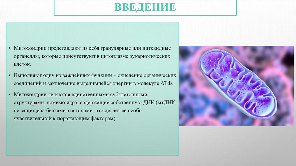 ВВЕДЕНИЕ• Митохондрии представляют из себя гранулярные или нитевидные