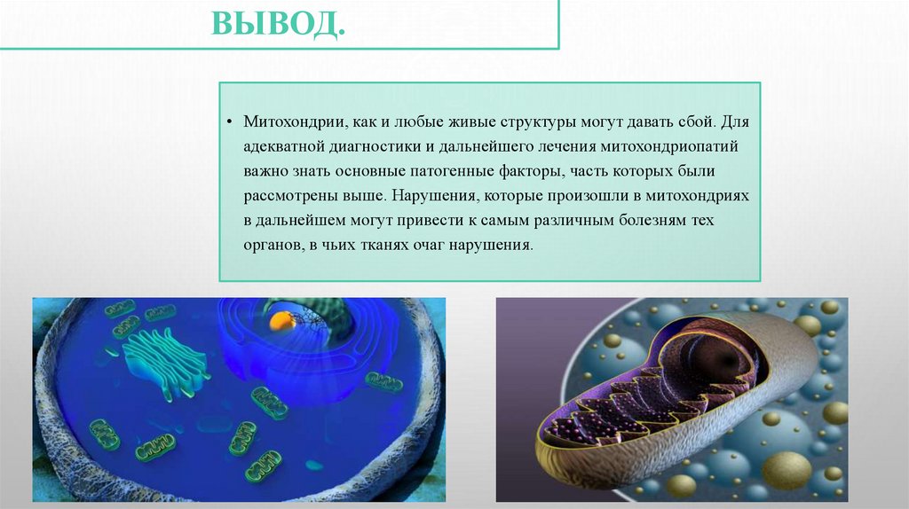 ВЫВОД.• Митохондрии, как и любые живые структуры могут давать сбой. Для