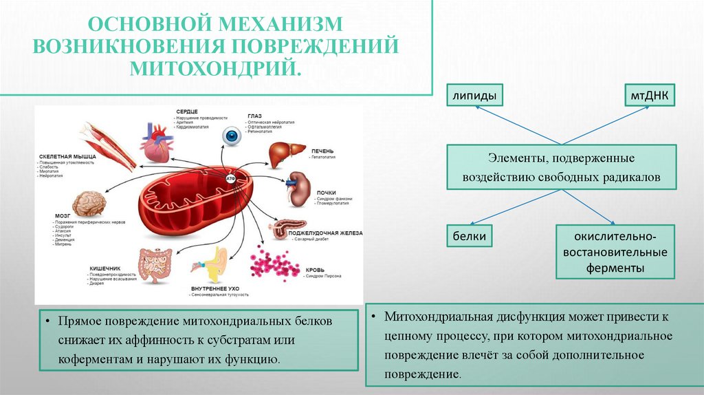 ОСНОВНОЙ МЕХАНИЗМ ВОЗНИКНОВЕНИЯ ПОВРЕЖДЕНИЙМИТОХОНДРИЙ.