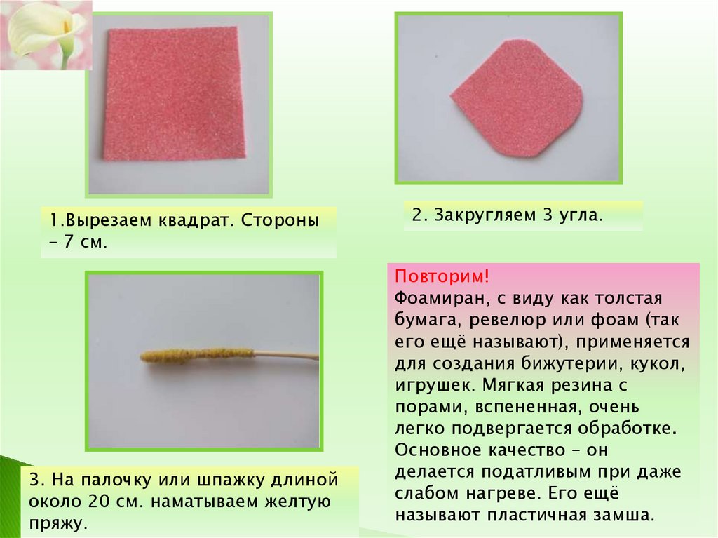 Повторим! Свойства фоамирана: