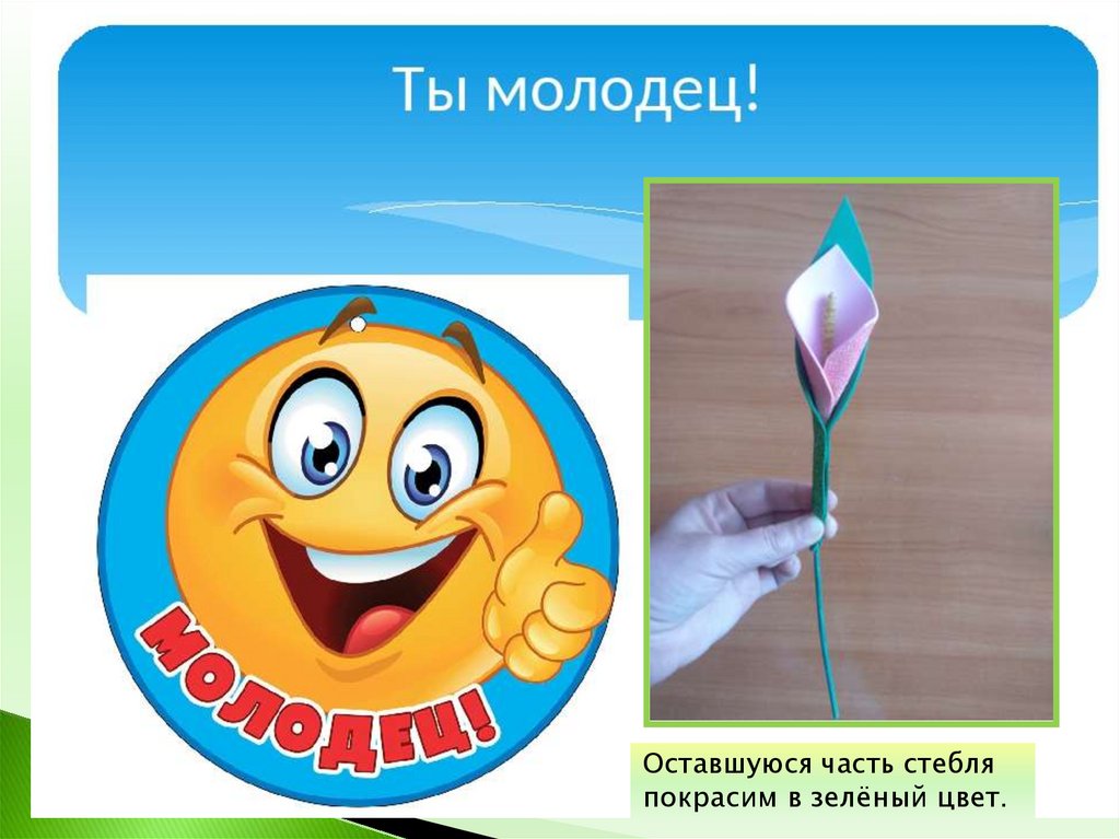 Оставшуюся часть стебляпокрасим в зелёный цвет.