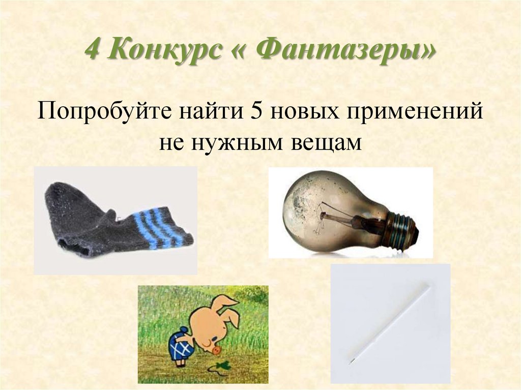 4 Конкурс « Фантазеры»Попробуйте найти 5 новых применений